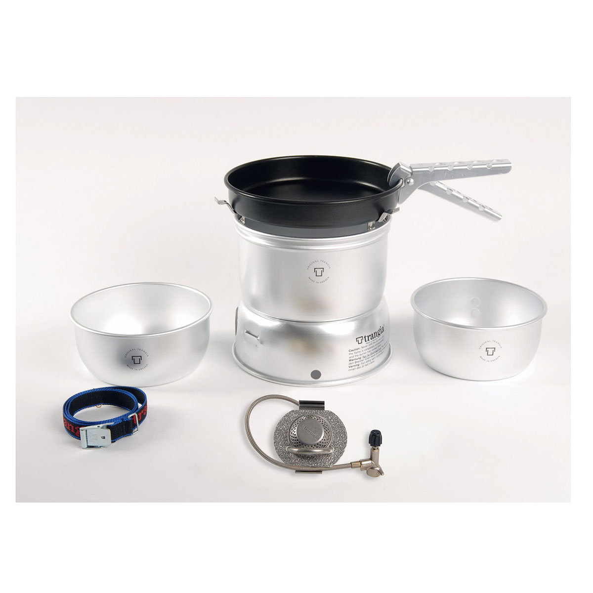 Passer godt til alenevandreren eller 2 personer. Et lite og kompakt kjøkken som krever minimal plass i ryggsekken. Laget av aluminiumslegering et materiale som er 50% sterkere enn vanlig aluminiumInneholder: 1 gassbrennerkjeler i ultralett aluminium. 2 kjeler på 1L hver. 1 non stick belagt stekepanne på 18cm Tang og reim. Egenskaper: Maks effekt:  2100 W. Vindskjerm medfølger.