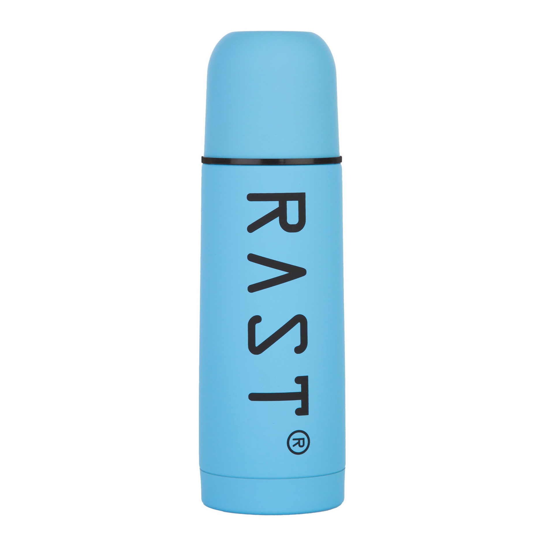 Termos fra Rast. En uknuselig termos i rustfritt stål med lekkasjesikker kork. Passer til kalde og varme drikker. Lokket er en isolert kopp. Termosen er gummiert utvendig og har en kapasitet på 0,35 l.