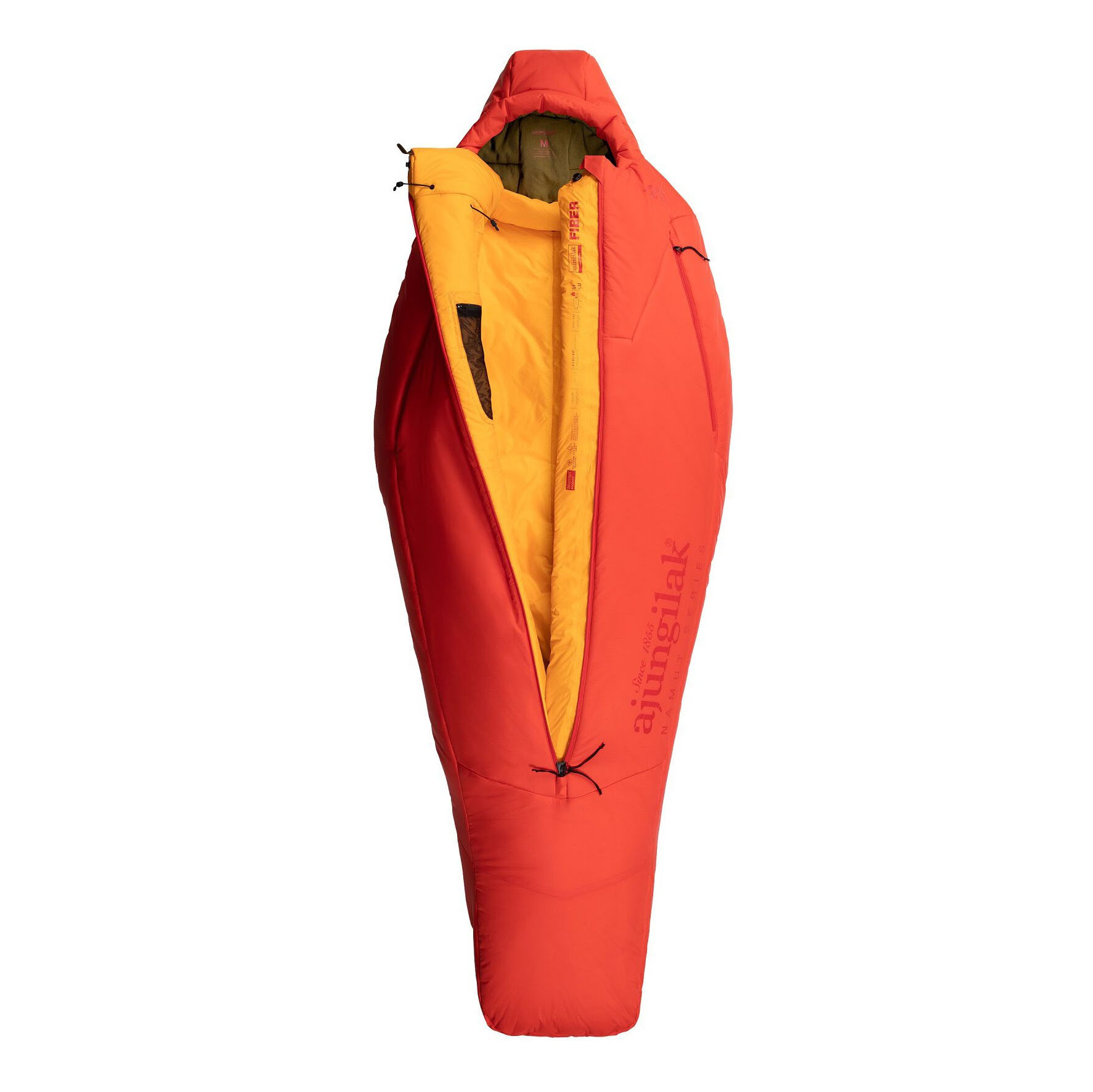 Siku Fiber er en super sovepose for både lange og korte turer hele året men helst når det er litt kaldt eller man ønsker ekstra varme. Maks personlengde: 180 cm. Vekt sovepose: 2380 gram. Fyllvekt: 1800 gram. Komforttemperatur: -21 t-limit (-13 t-comfort). Siku Fiber fra Ajungilak en moderne utgave av den legendariske soveposen Tyin. Designet for komfort hele året varm nok til turer i nordiske vinternetter. Nyutviklet passform geniale glidelåser med egne åpninger for armene smart senterglidelås og lyddempende materiale i hetten. Selv når kuldegradene biter er du garantert en god natts søvn i Siku Fiber. Syntetisk fiberfyll fra Ajungilak gir lang levetid og god motstand mot fuktighet. Det norske merkenavnet Ajungilak representerer over 160 års erfaring innen outdoor og kommer nå med en knallsterk og fremtidsrettet ny soveposeserie. En helt nyutviklet passform basert på hvordan mennesker faktisk ligger og sover lar deg oppleve bedre plass og høyere komfort. Egne åpninger for armene gir mulighet for matlaging kaffekos og generell hygge uten å måtte forlate posens varme. Toveisglidelåsen er sentrert midt på posen noe som gir lett tilgang og enkel temperaturregulering. Glidelås midt på posen er svært praktisk enten du foretrekker hengekøye telt eller åpen himmel. YKK- glidelåsen har også er kappe som hindrer at drageren setter seg fast i stoffet et lite men likevel stort steg fremover! Lyddempende materiale i hetten gir en lun og deilig opplevelse og det følger også med sovemaske og øreplugger for maksimal rekreasjon.