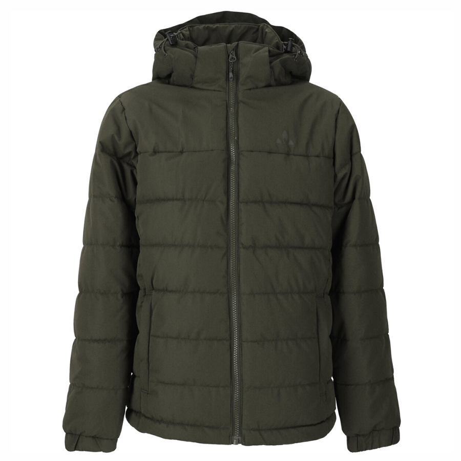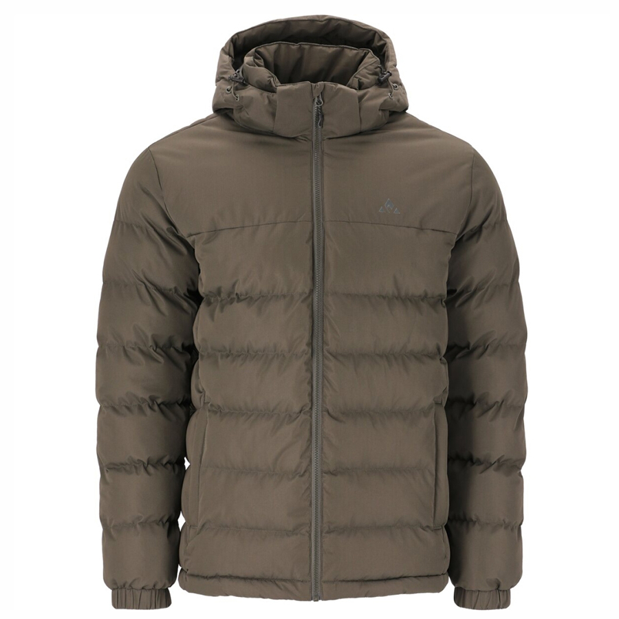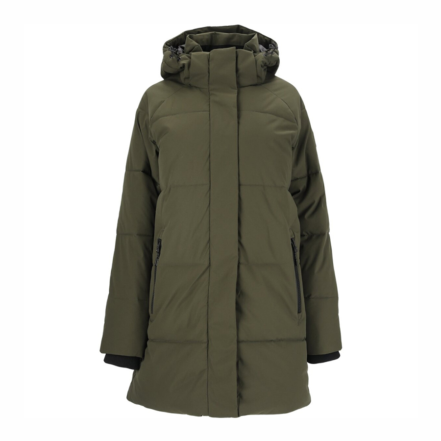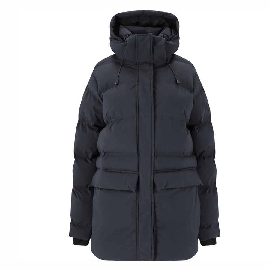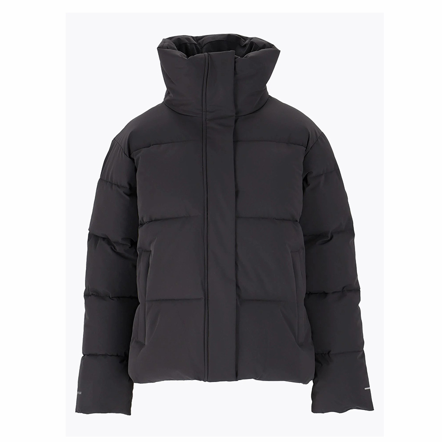 Lett og myk puffer i vannavvisende og vindtett materiale og en lett A-formet fasong. Mykt og isolerende fyll av resirkulert polyester. Jakken har ekstra høy krage med myk microsuede på innsiden. Skjulte sidelommer med glidelås. Frontglidelås skjult av stormklaff. Refleksdetaljer foran og bak. Vannsøyle: 8 000 mm
