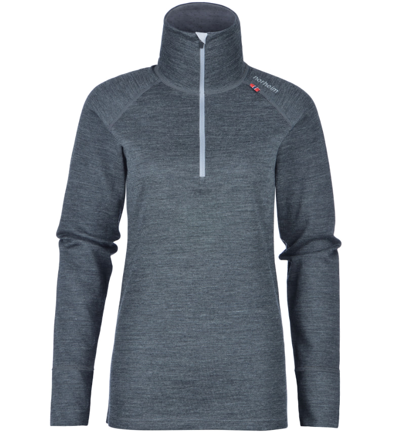 Norheim Oppdal er et teknisk og varm ullundertøy som kombinerer ull og polyester. Ytterlag i ullmiks isolerer godt og varmer mens det innereste laget i polyester transporterer fuktighet bort fra kroppen samtidig som den ikke klør Genser med høy hals og glidelås.Yttermateriale 70% merinoull 30% polyesterInnside 100% polyester