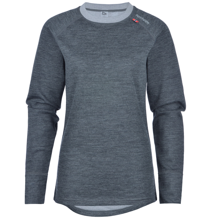 Norheim Oppdal er et teknisk og varm ullundertøy som kombinerer ull og polyester. Ytterlag i ullmiks isolerer godt og varmer mens det innereste laget i polyester transporterer fuktighet bort fra kroppen samtidig som den ikke klør. Genser med rund hals.
