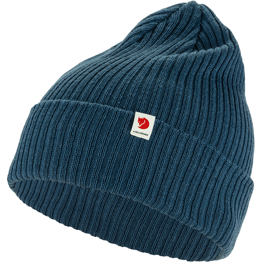 Myk og god strikkelue i resirkulert polyester. Fjällräven Rib Hat har pen ribbestrikk med bred oppbrett. Strikken i polyester fjerner fuktighet og tørker fort. Det gjør at den egner seg godt både i hverdagen og på fjellet.