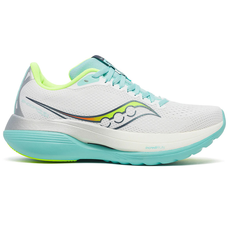 Saucony Endorphin Trainer er en godt dempet responsiv og energieffektiv treningssko med ¾ karbonplate. Skoene er beregnet for hardt underlag. Saucony Endorphin Trainer har en komfortabel overdel i Engineered mesh uten sømmer. En svært tykk mellomsåle i to ulike skum. Nærmest fotbladet finner du incrediRUN skum som gir den beste kombinasjon av støtdemping og respons, mens PWRRUN skum som gir en stødig plattform samtidig med god og holdbar støtdemping er nærmest underlaget. Mellom lagene er det lagt inn en ¾ karbonplate som avstiver skoen og som hjelper å drive ditt løpesteg frem. _Geometrien i mellomsålen har SPEEDROLL-teknologien i seg som skapes kontinuerlig fremdrift som generer mer fart med mindre energitap. Saucony Endorphin Trainer passer deg som vil ha en treningssko med en moderne konstruksjon som har en kombinasjon av mye støtdemping og karbonplate for effektiv fremdrift._ – Kategori: Rask treningssko (Nøytral) – Overdel av Engineered mesh – Støtdemping: Kombinasjon av PWRRUN og incrediRUN i mellomsålen – ¾ karbonplate mellom lagene i mellomsålen – Dropp 8mm (Hæl: 41 mm / Forfot: 33 mm) – Vekt dame 252g us8 / herre 280g us9