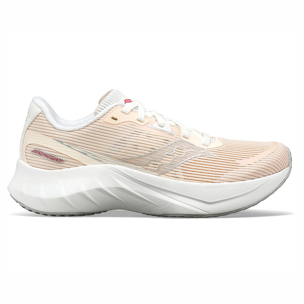 Saucony Tide 2 er en energieffektiv løpesko til en fornuftig pris. Skoen har lett, mykt og smidig mellomsålemateriale med ¾ nylonplate for ekstra respons i frasparket. Skoen er beregnet for korte og lange turer på hardt underlag som asfalt og hardpakket grus Overdelen består av en lett og åpen mesh som gir en god og fast passform rundt hele foten. Mellomsålen består av et chassis av PWRRUN med ¾ nylonplate og responsivt PWRRUN+ skum over. Dette gir en godt dempet mellomsåle med god respons i frasparket. Yttersålen i en slitesterk karbonholdig gummiblanding. • FORMFIT konstruksjon med ventilerende og sømløs mesh • Mellomsåle med kombinasjon av PWRRUN ramme og PWRRUN+ skum i kjernen samt ¾ Nylonplate • Yttersåle i karbonholdig slitesterk gummiblanding. • Kategori Nøytral mengdetrening • Dropp 8mm • Vekt dame 235g