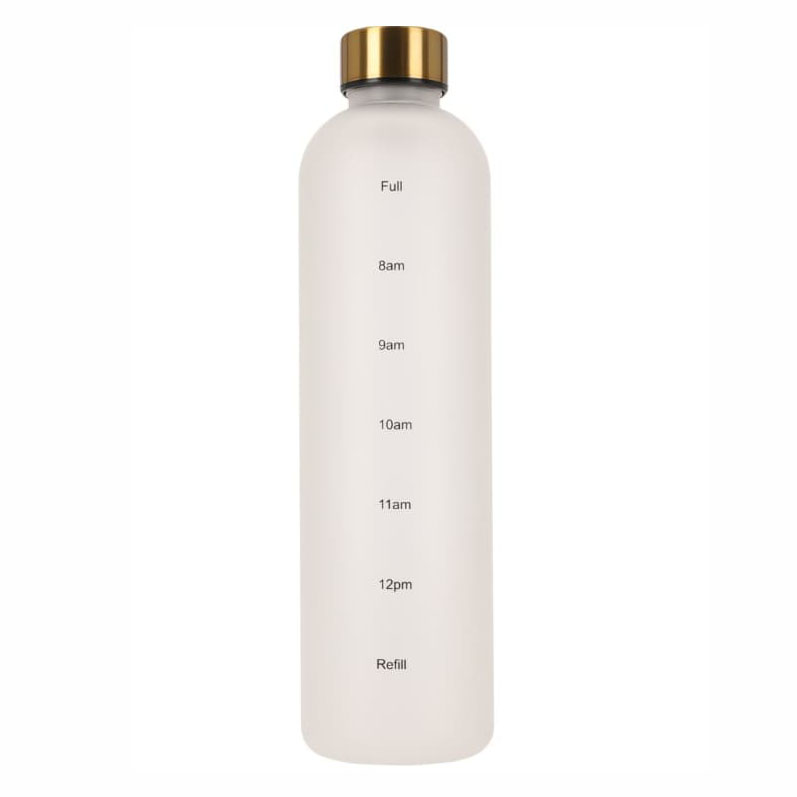 Ved hjelp avย tidsoversikt vil denne sporty flasken hjelpe deg med รฅ drikke nok vann gjennom dagenMotivasjonsflasken viser hvor mye vann man bรธr drikke hver dag sett i forhold til dรธgnets timer