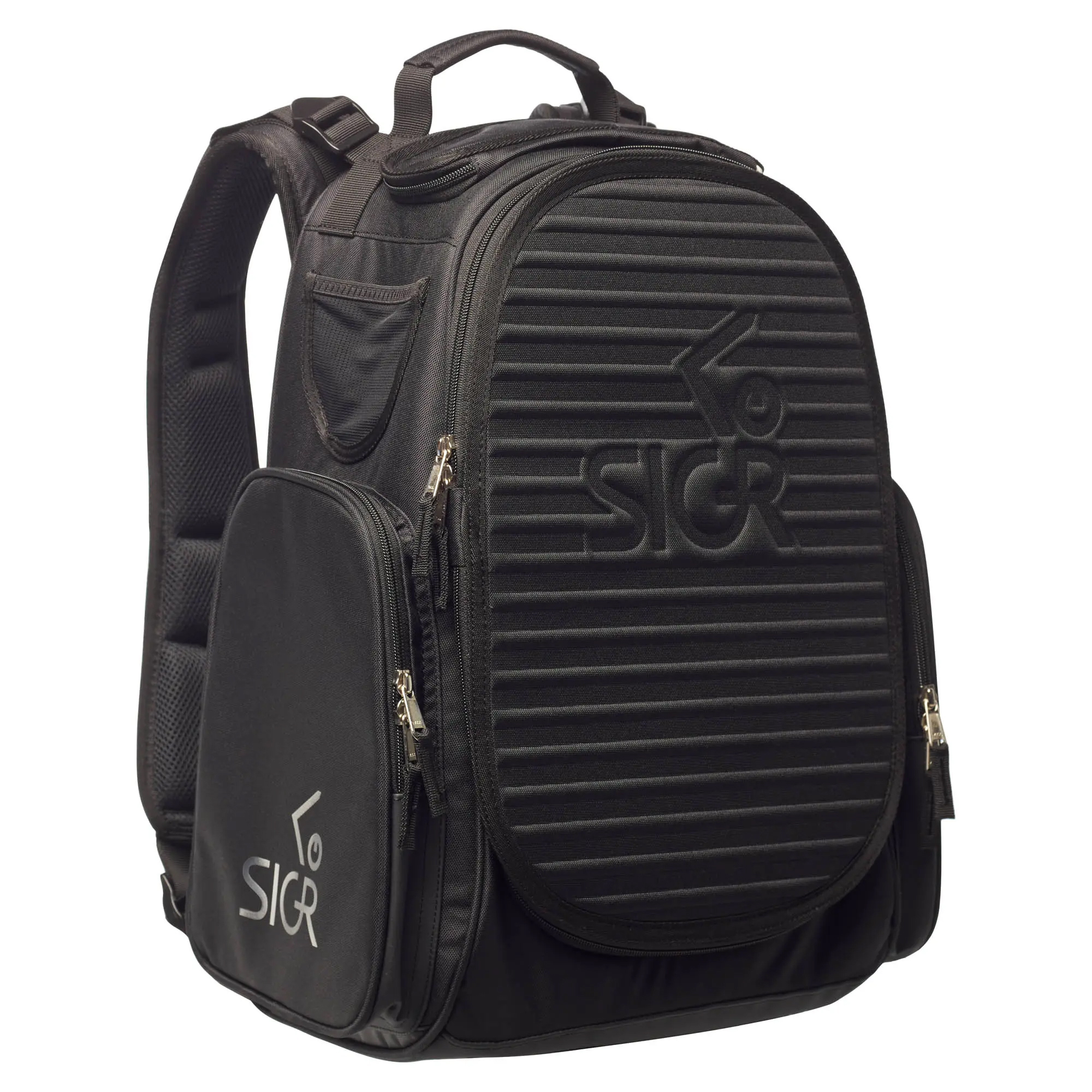 SIGR Odin er en romslig diskgolfsekk med plass til over 20 discer, topplomme for ekstra discer, sidelommer for utstyr, isolerte flaskeholdere og egne lommer for verdisaker, mini og paraply eller stol.