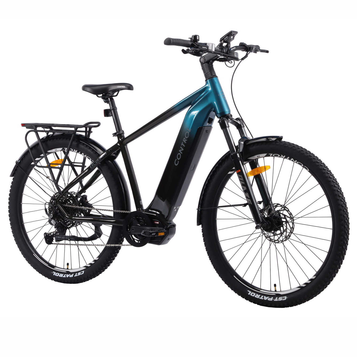 Control EXCURSION EQ Motor: Ananda M100 krankmotor, 250W, 110 Nm dreiemoment. Display: Ananda D16 med flere assistansenivåer tilpasset norske forhold. Batteri: 48V / 21Ah / 1008 Wh, integrert og avtakbart. Girsystem: Shimano Cues U6000, 11-delt. Bremser: 4-stempel hydrauliske skivebremser. Dempegaffel: Ny RST Blaze, lett og presis. Hjul: 27,5″ med nippelforsterkede felger og 13G eiker. Nav: Maskinlagrede for økt slitestyrke. Bagasjebærer: MIK-system med integrert baklykt. Skjulte kabler. Sadel: Komfortsadel med oppreist sittestilling. Vekt: Ca. 30 kg (avhengig av rammestørrelse). Bygget for lange turer, tung last og tøffe forhold – med maksimal komfort og kontroll.