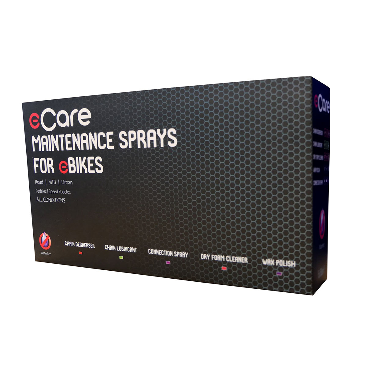 eCare Vedlikeholdssett for el-sykler inneholder alle de essensielle produktene for å ta vare på en el-Sykkel i en praktisk pakke. Inneholder kontaktspray for å holde elektriske kontakter rene og uten korrosjon kjederensespray for å rense kjede og drivverk skumrengjøringsspray for å vaske skitne rammer uten behov for vann kjedesmøringsspray for å smøre kjedet etter rengjøring og voksspray for å beskytte rammen når den er rengjortVedlikeholdssett for el-syklerAlt du trenger for å holde el-sykkelen ren og penØker levetiden på din el-sykkelInneholder 5 forskjellige sprayer
